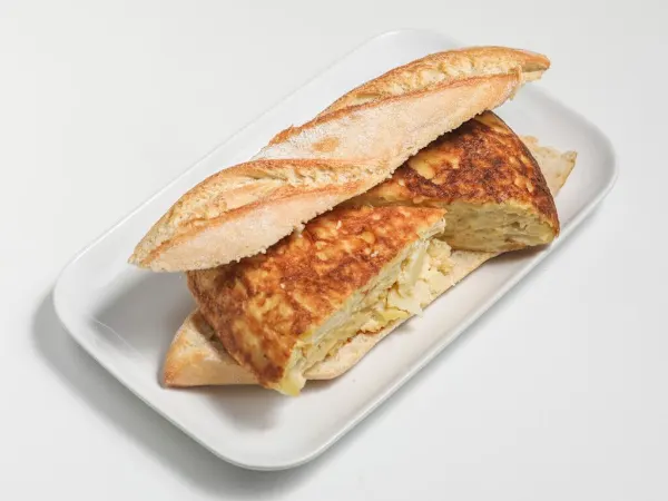 Bocata de tortilla de patatas con cebolla.