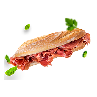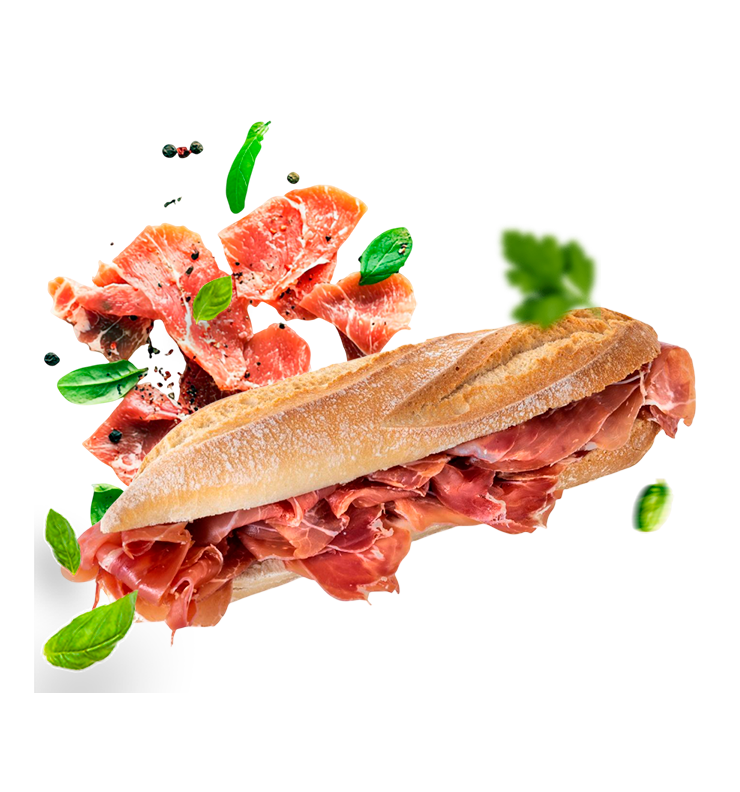 Bocadillo de pan relleno de 120 gr. de jamón serrano...