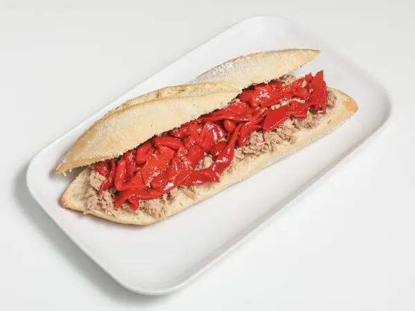 Bocata de atún con pimientos.