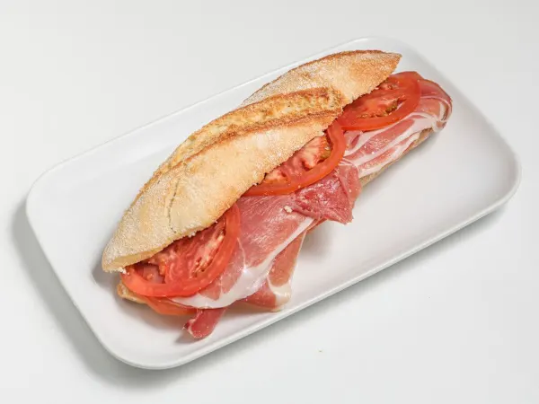Bocata de 6 lonchas de jamón y 2 rodajas de...