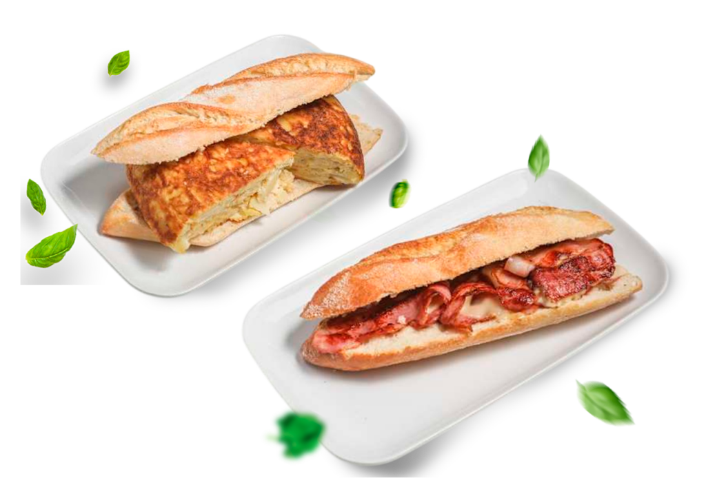 Bocata a elegir entre atún con pimientos, beicon con queso,...