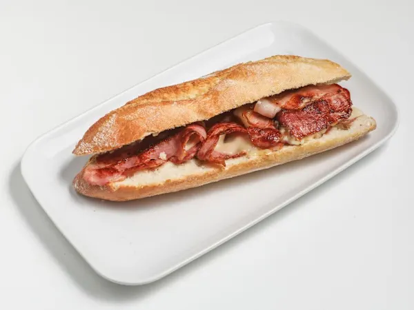 Bocata de 5 lonchas de bacon con queso.